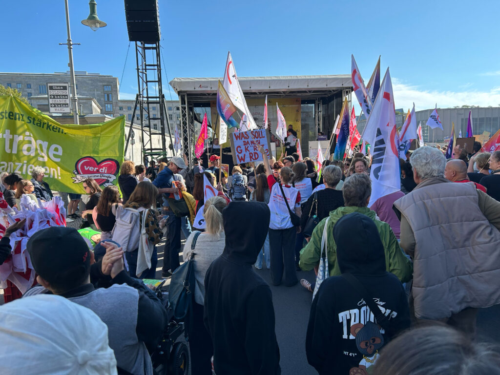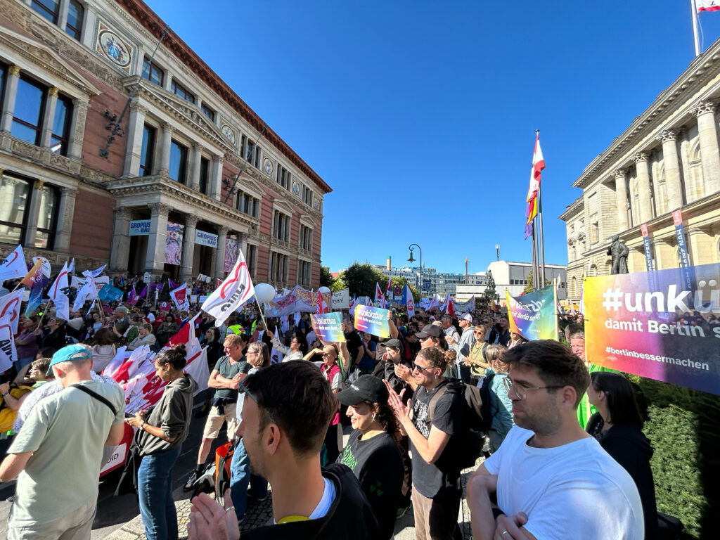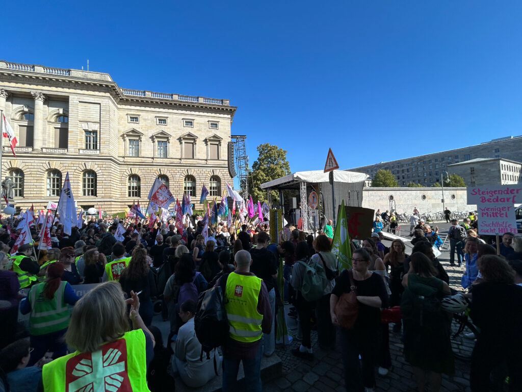 Heute, am 11. September 2025, versammelten sich Tausende Menschen vor dem Berliner Abgeordnetenhaus, darunter Beschäftigte aus Sozial- und Bildungsbereichen, Wohlfahrtsverbände sowie betroffene Bürger*innen. Die Demonstrationen liefen unter Schlagworten wie „#Unkürzbar“, „Für ein soziales Berlin“ oder „Berlin darf nicht kaputtgespart werden“.